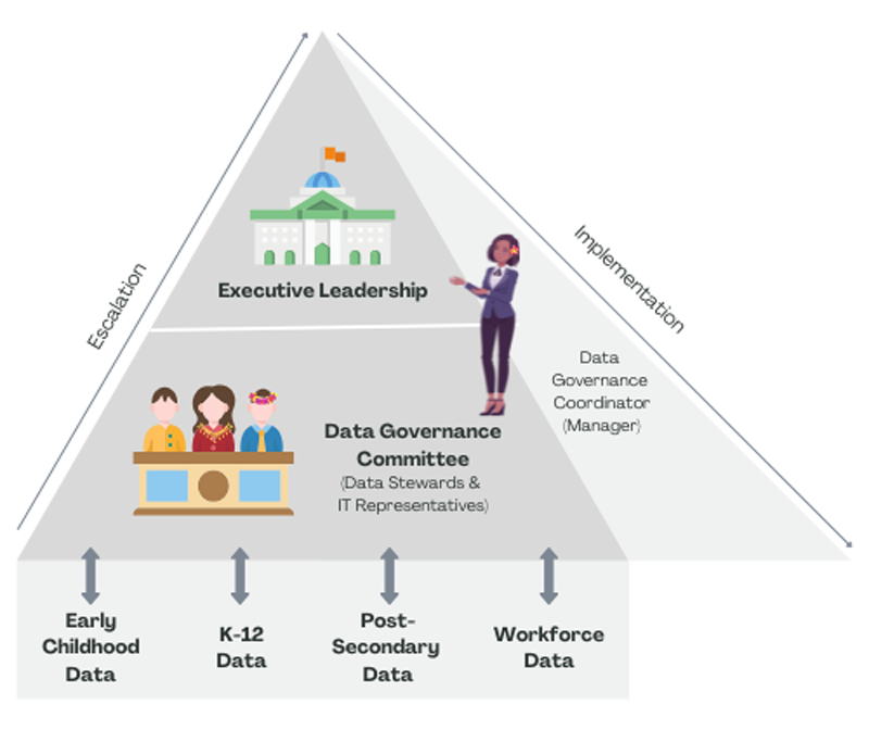 - Composed of the chief executive (or designee) of each partner agency and the Data Governance Coordinator (Manager)